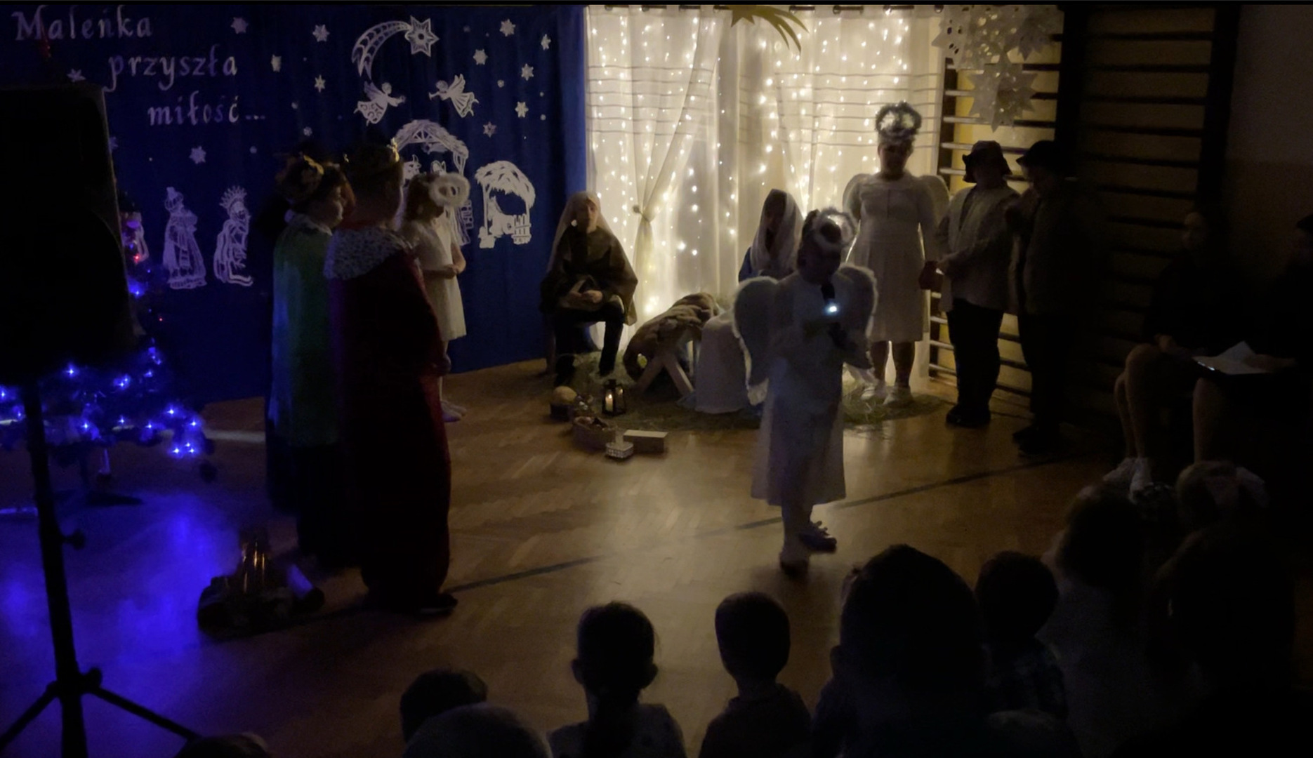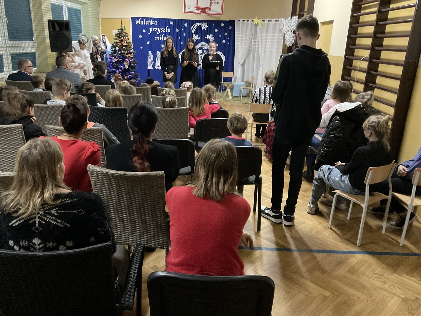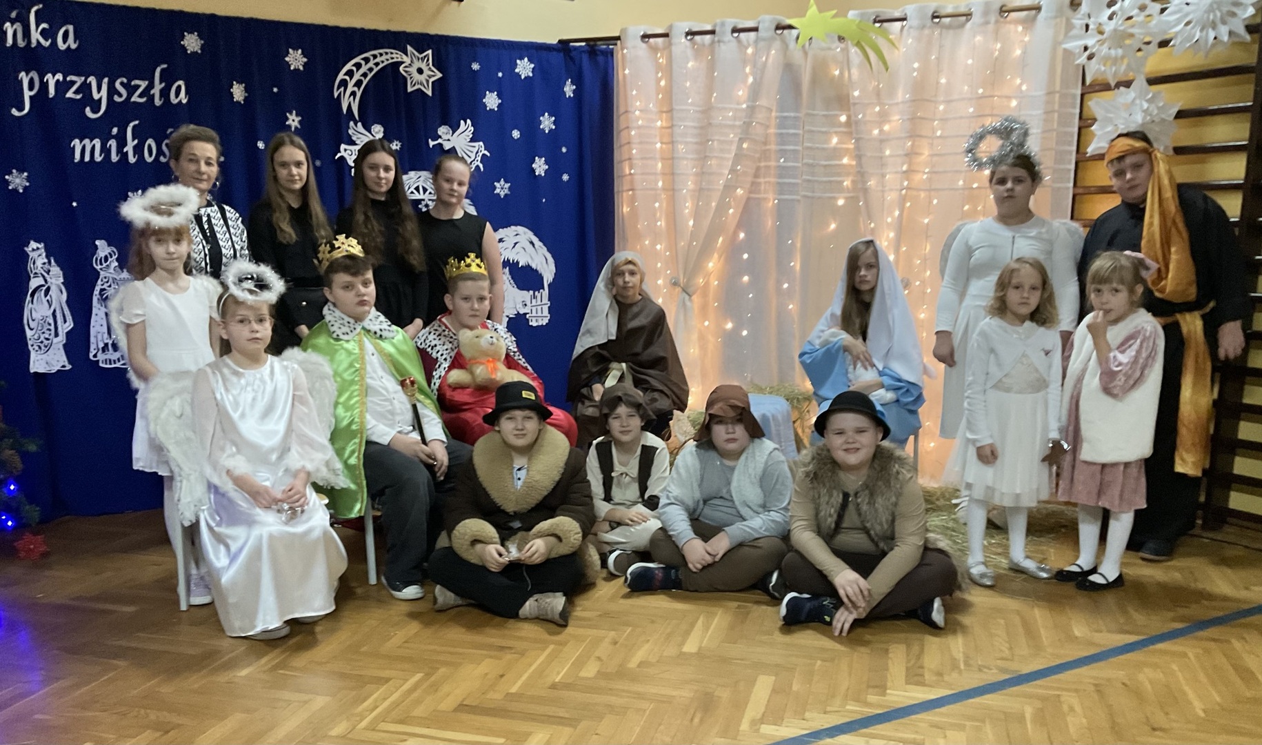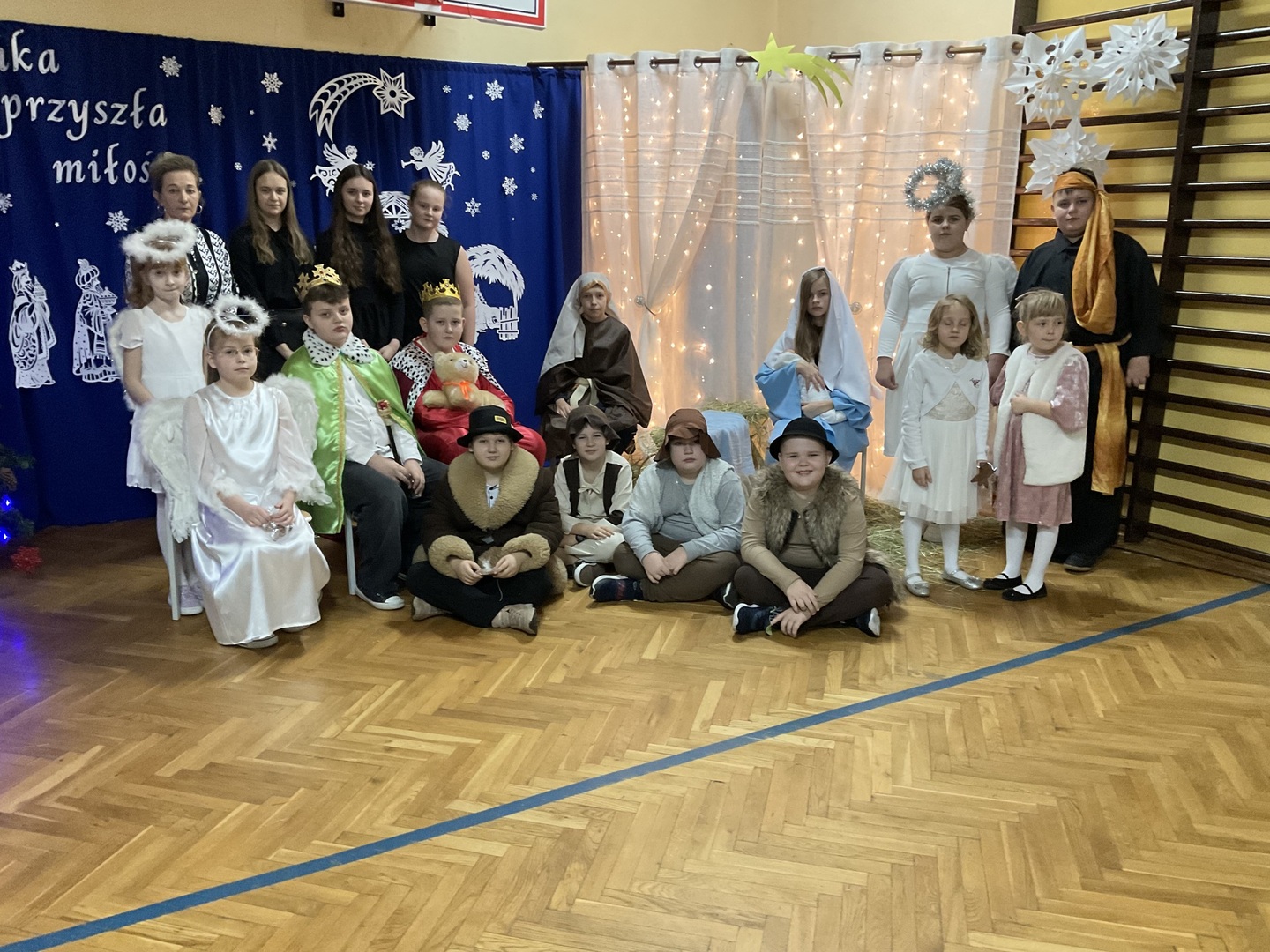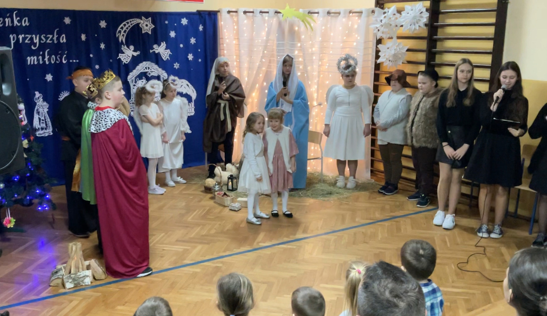 20 grudnia 2023 roku szkolni aktorzy świetnie i z ogromnym zaangażowaniem wcielili się w swoje role, przypominając w ten sposób wydarzenia sprzed ponad dwóch tysięcy lat, kiedy to w Betlejem narodziło się Boże Dzieciątko. Dzieci doskonale odegrały role Maryi i Józefa, pasterzy, aniołów, trzech króli, przybywających złożyć pokłon Jezusowi narodzonemu w ubogiej stajence. Świetności inscenizacji dodały kolędy i pastorałki, które napełniły wszystkich świąteczną radością i sprawiły, że poczuliśmy magię zbliżających się świąt.