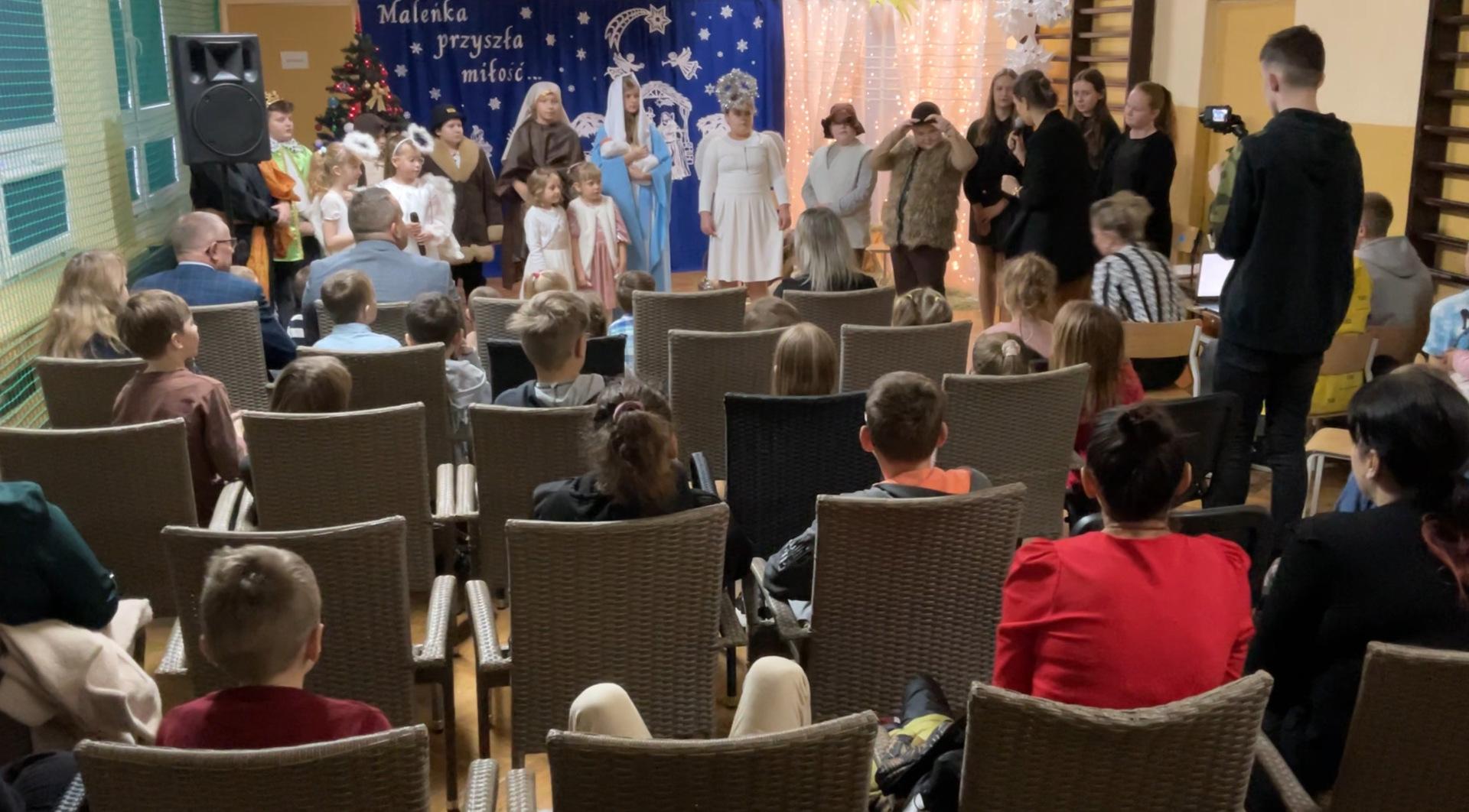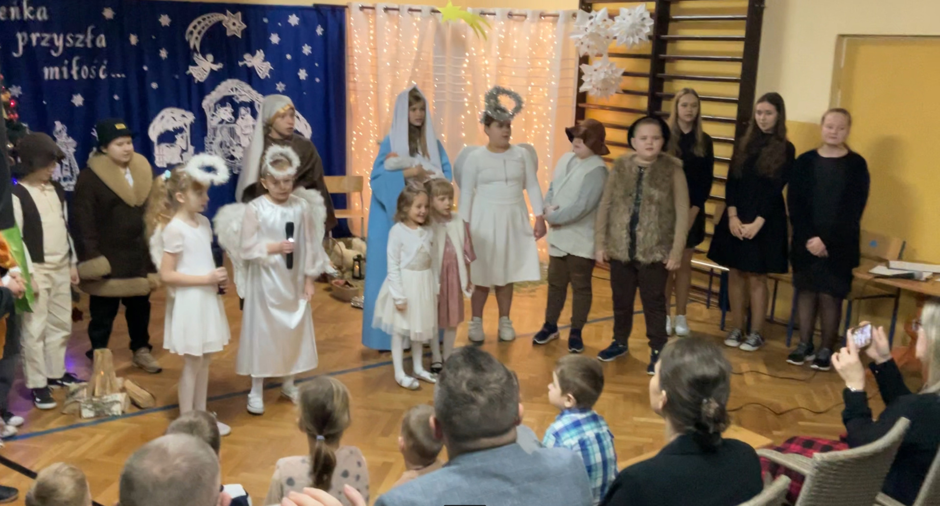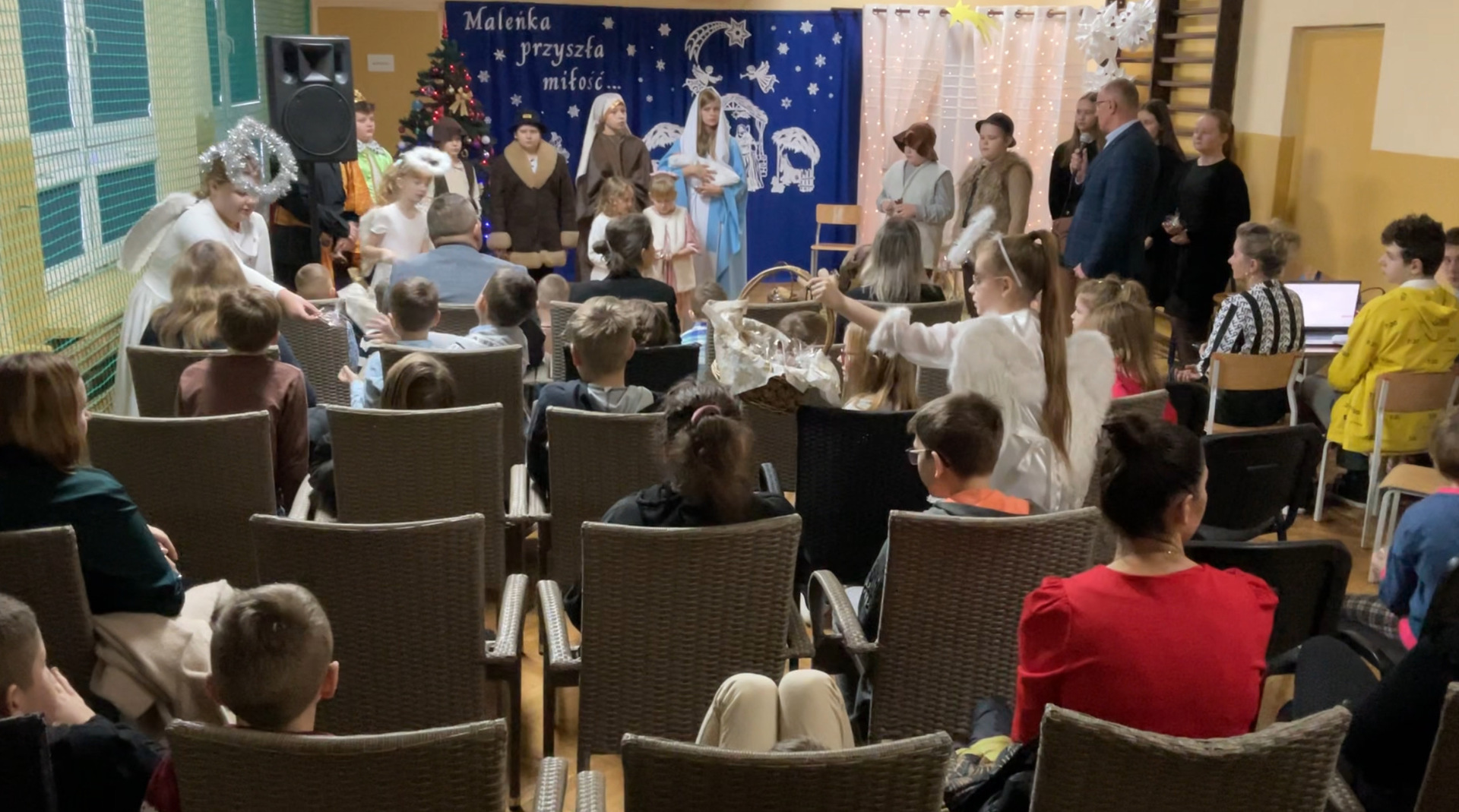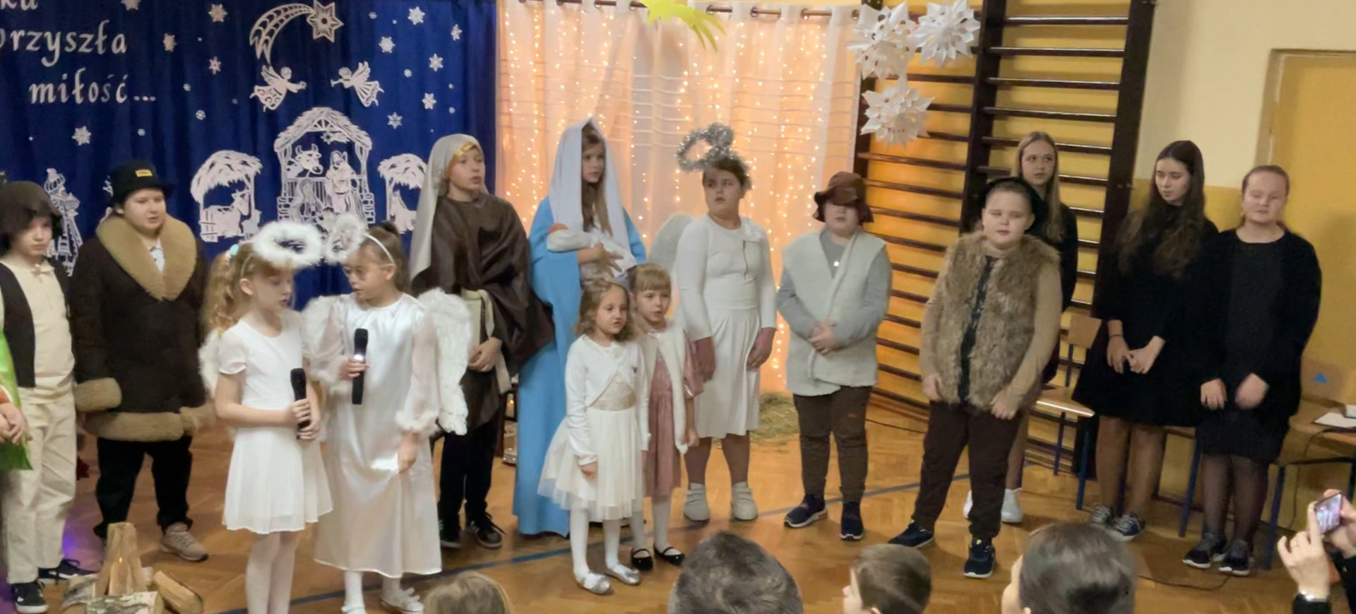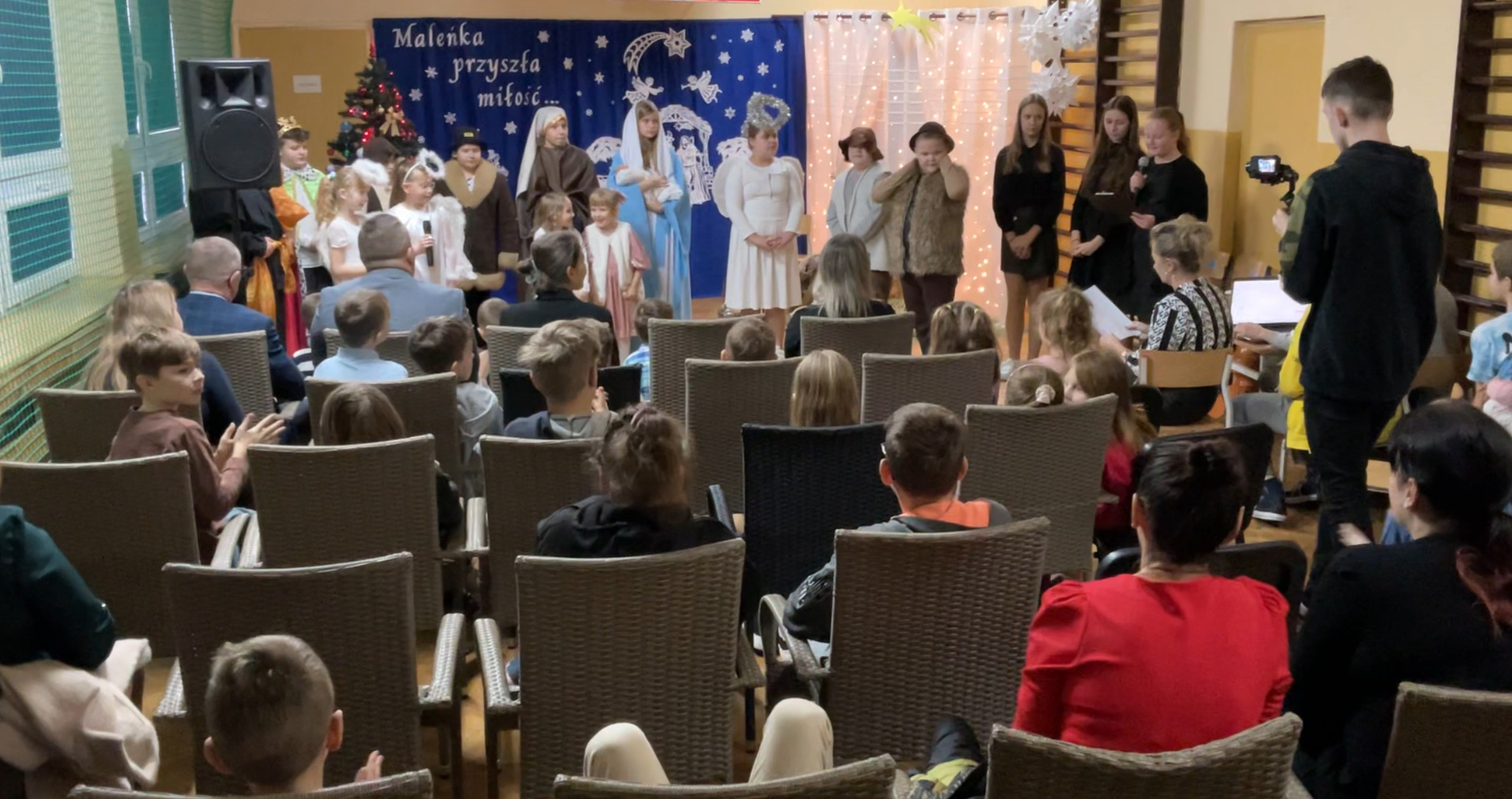 20 grudnia 2023 roku szkolni aktorzy świetnie i z ogromnym zaangażowaniem wcielili się w swoje role, przypominając w ten sposób wydarzenia sprzed ponad dwóch tysięcy lat, kiedy to w Betlejem narodziło się Boże Dzieciątko. Dzieci doskonale odegrały role Maryi i Józefa, pasterzy, aniołów, trzech króli, przybywających złożyć pokłon Jezusowi narodzonemu w ubogiej stajence. Świetności inscenizacji dodały kolędy i pastorałki, które napełniły wszystkich świąteczną radością i sprawiły, że poczuliśmy magię zbliżających się świąt.
