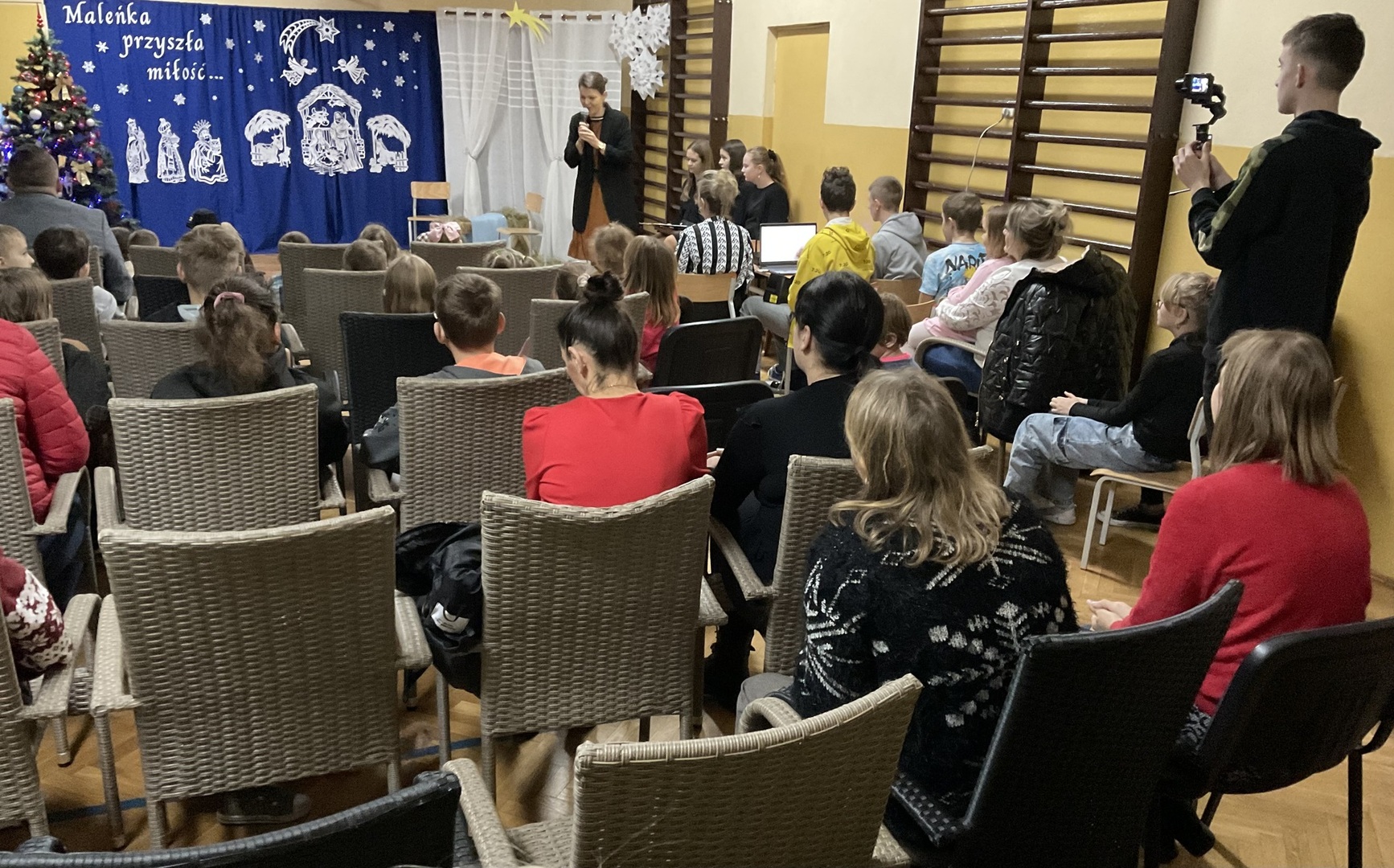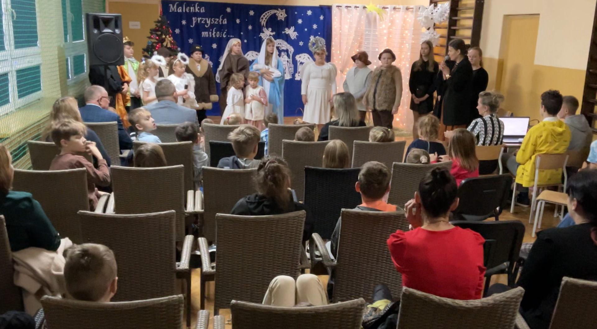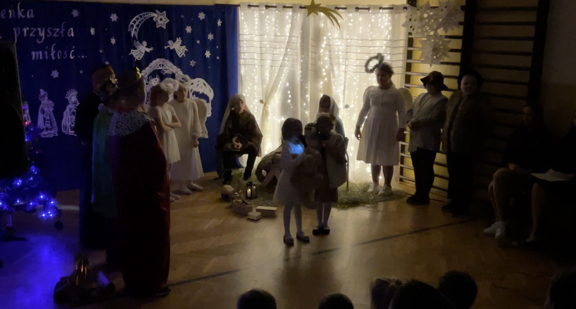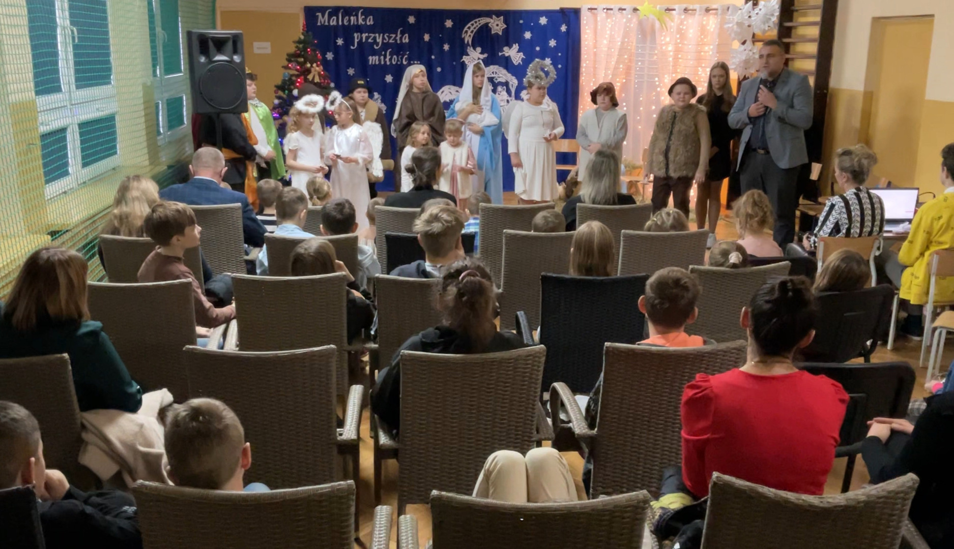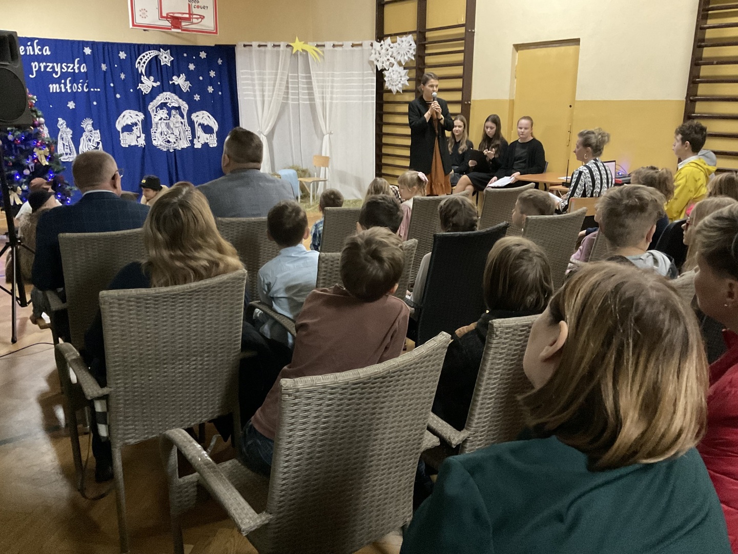 20 grudnia 2023 roku szkolni aktorzy świetnie i z ogromnym zaangażowaniem wcielili się w swoje role, przypominając w ten sposób wydarzenia sprzed ponad dwóch tysięcy lat, kiedy to w Betlejem narodziło się Boże Dzieciątko. Dzieci doskonale odegrały role Maryi i Józefa, pasterzy, aniołów, trzech króli, przybywających złożyć pokłon Jezusowi narodzonemu w ubogiej stajence. Świetności inscenizacji dodały kolędy i pastorałki, które napełniły wszystkich świąteczną radością i sprawiły, że poczuliśmy magię zbliżających się świąt.