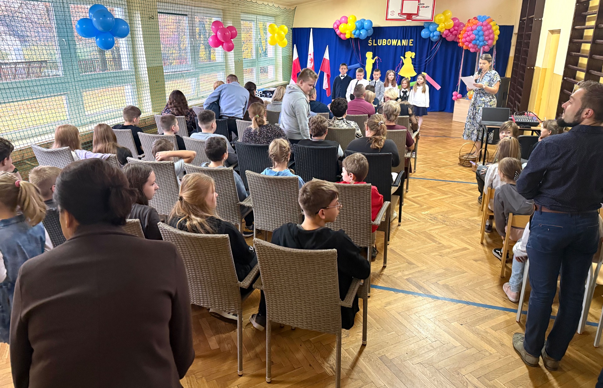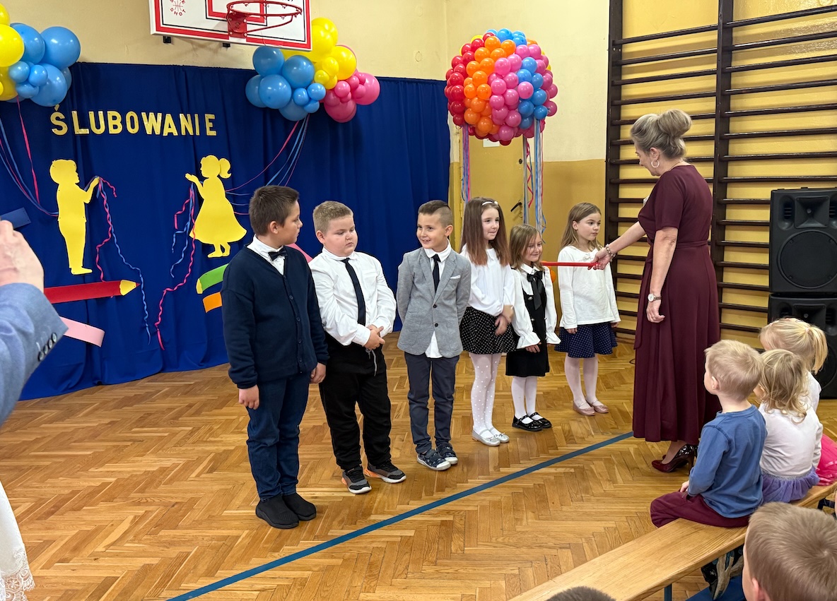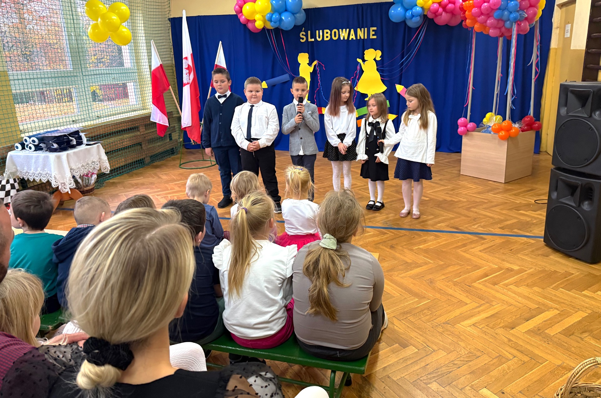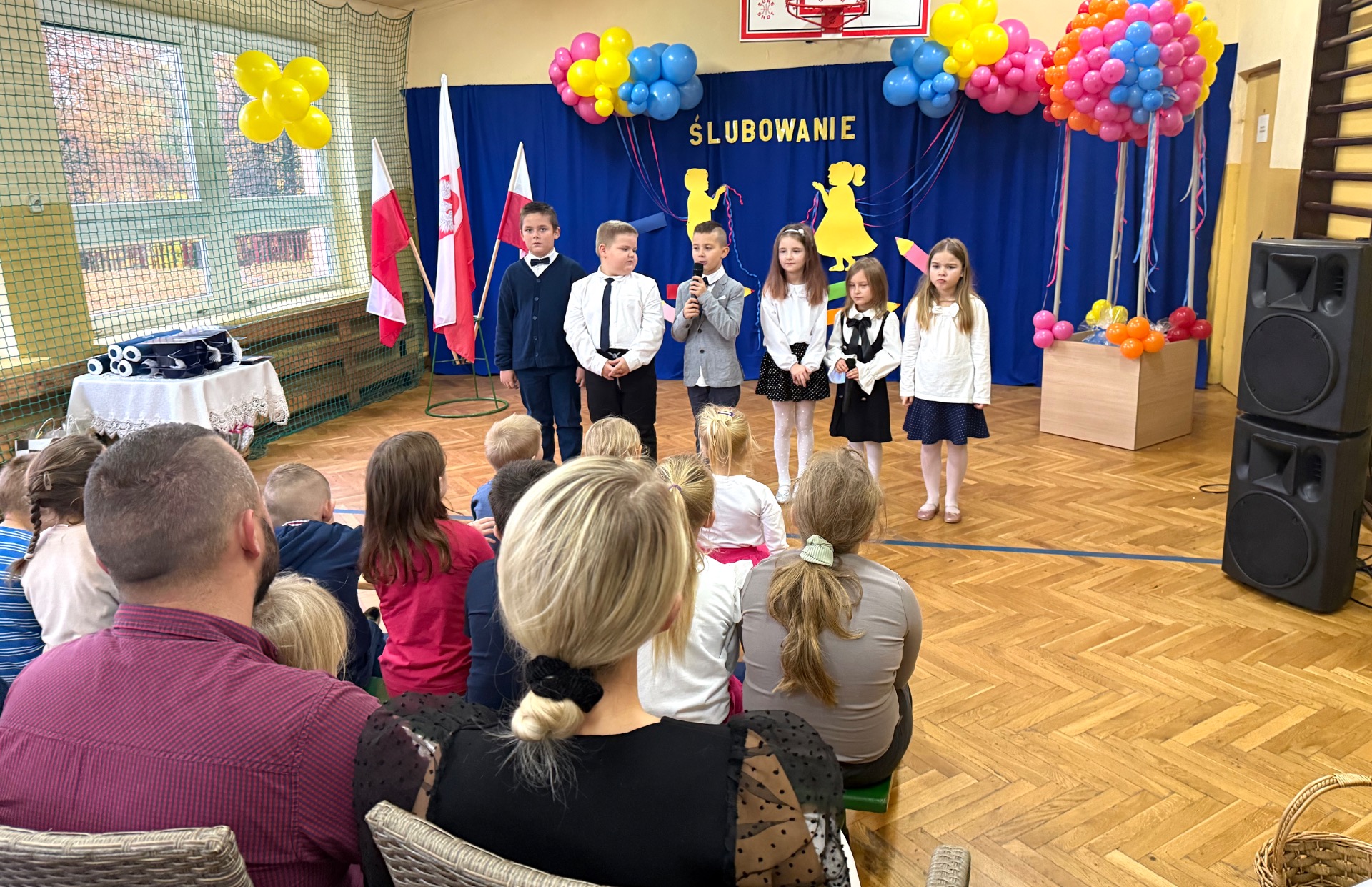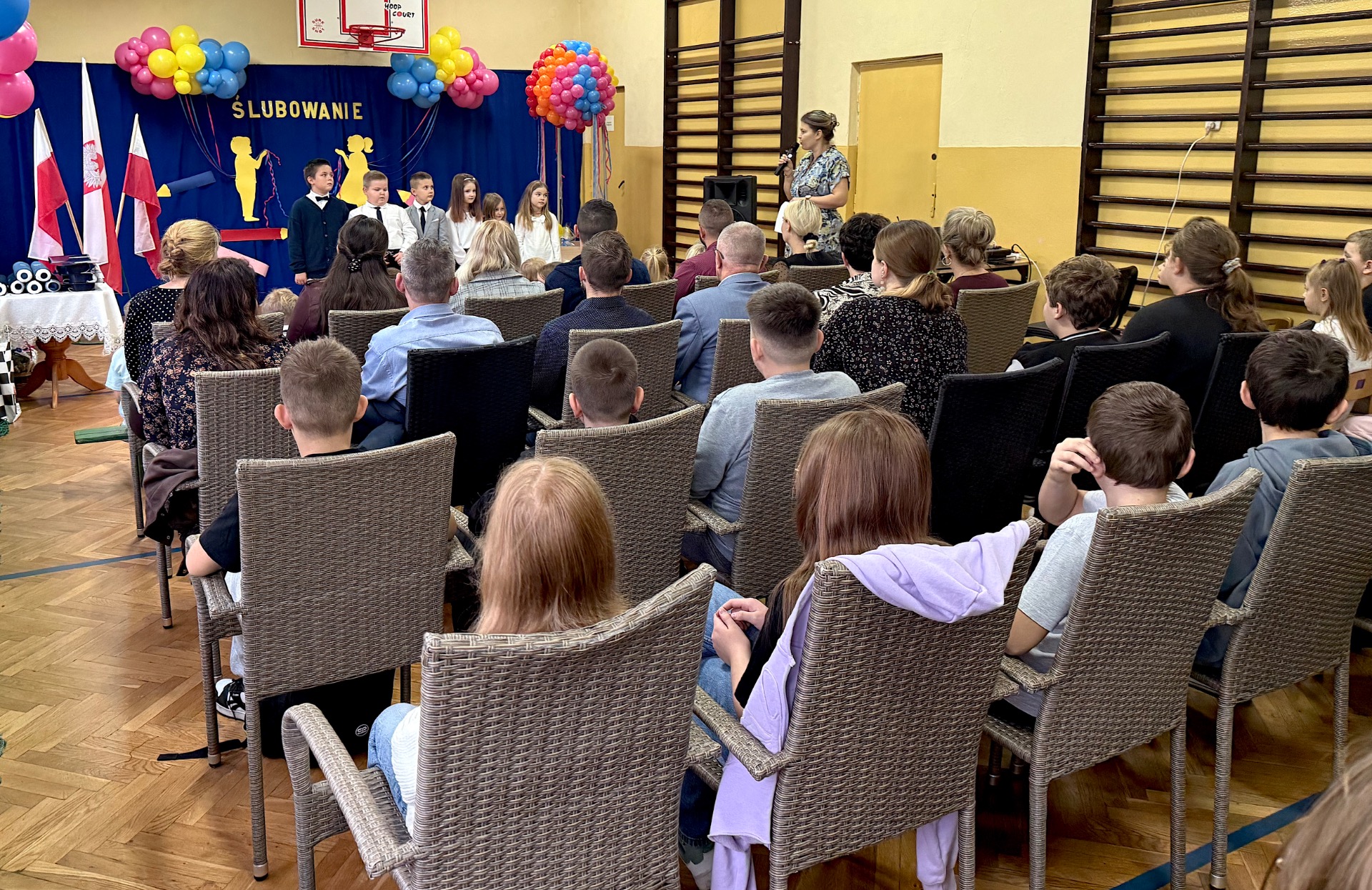 Cała społeczność szkolna z wielką radością przyjęła klasę pierwszą w poczet uczniów.