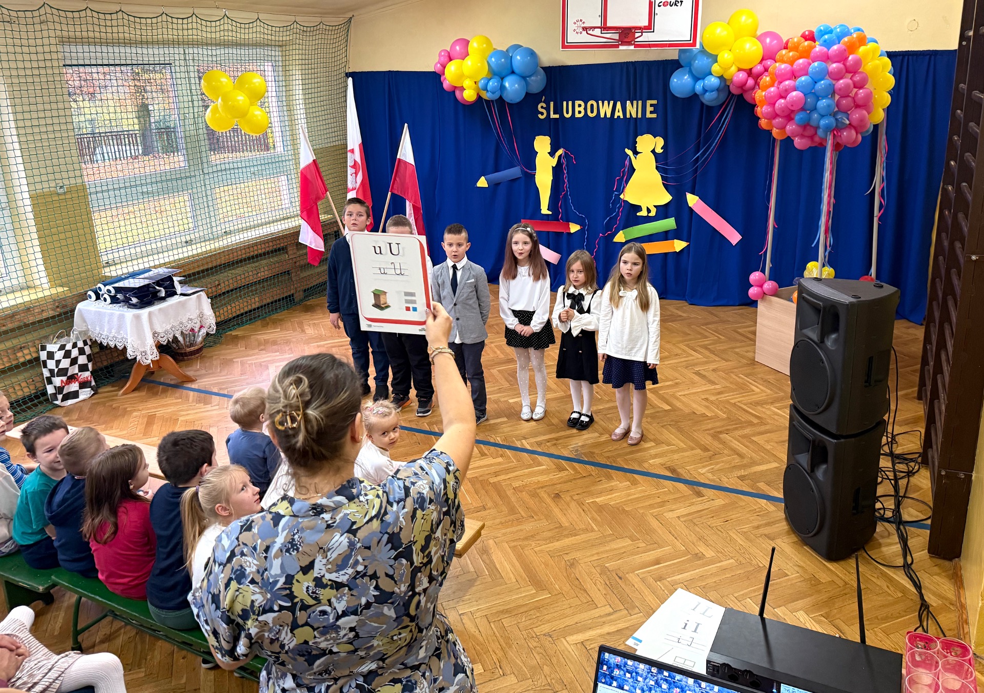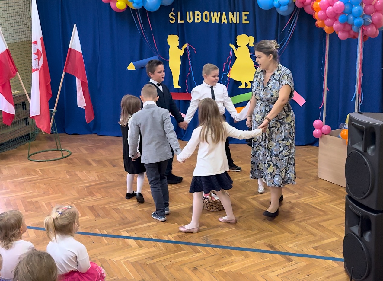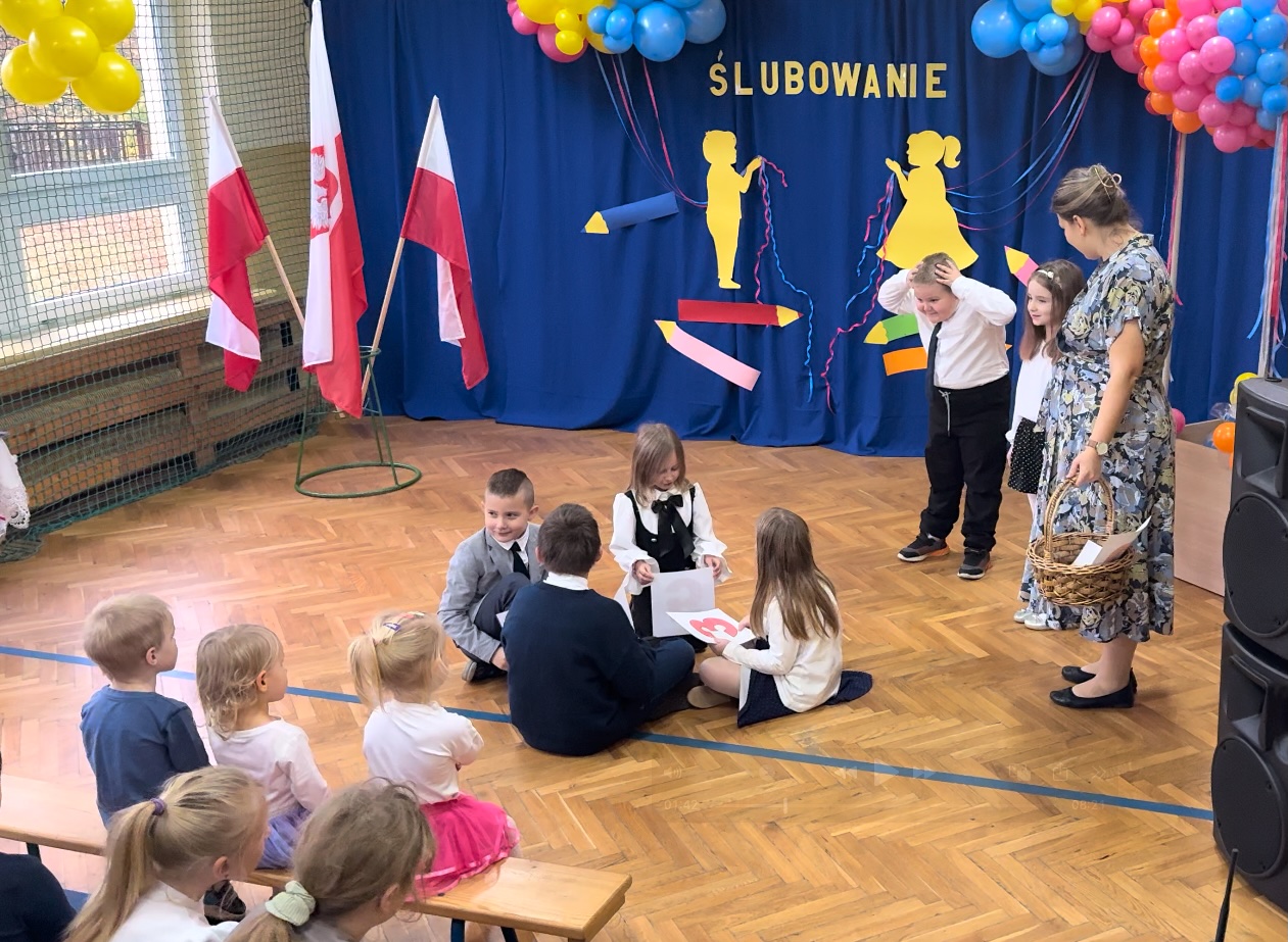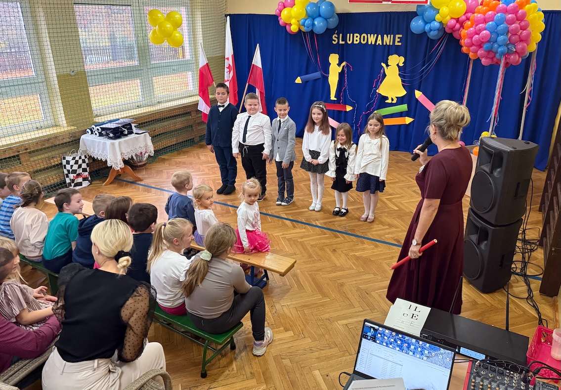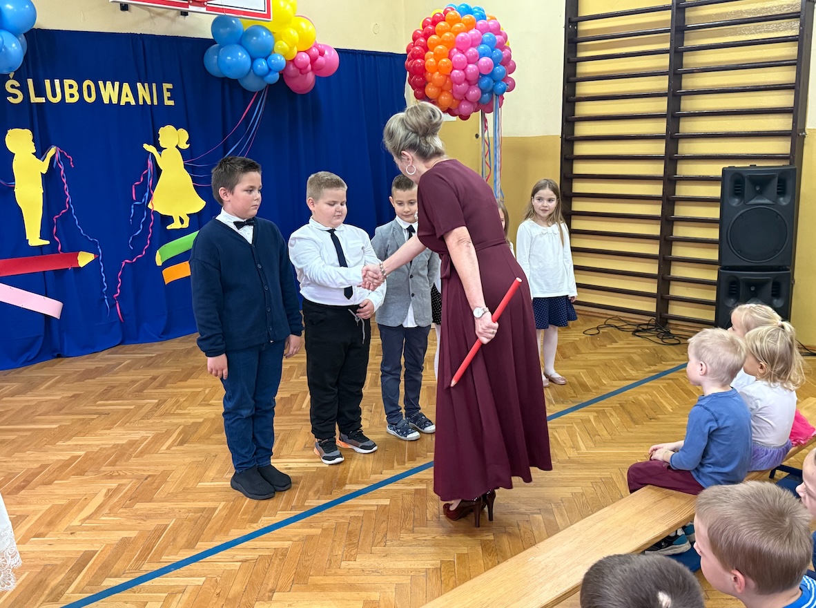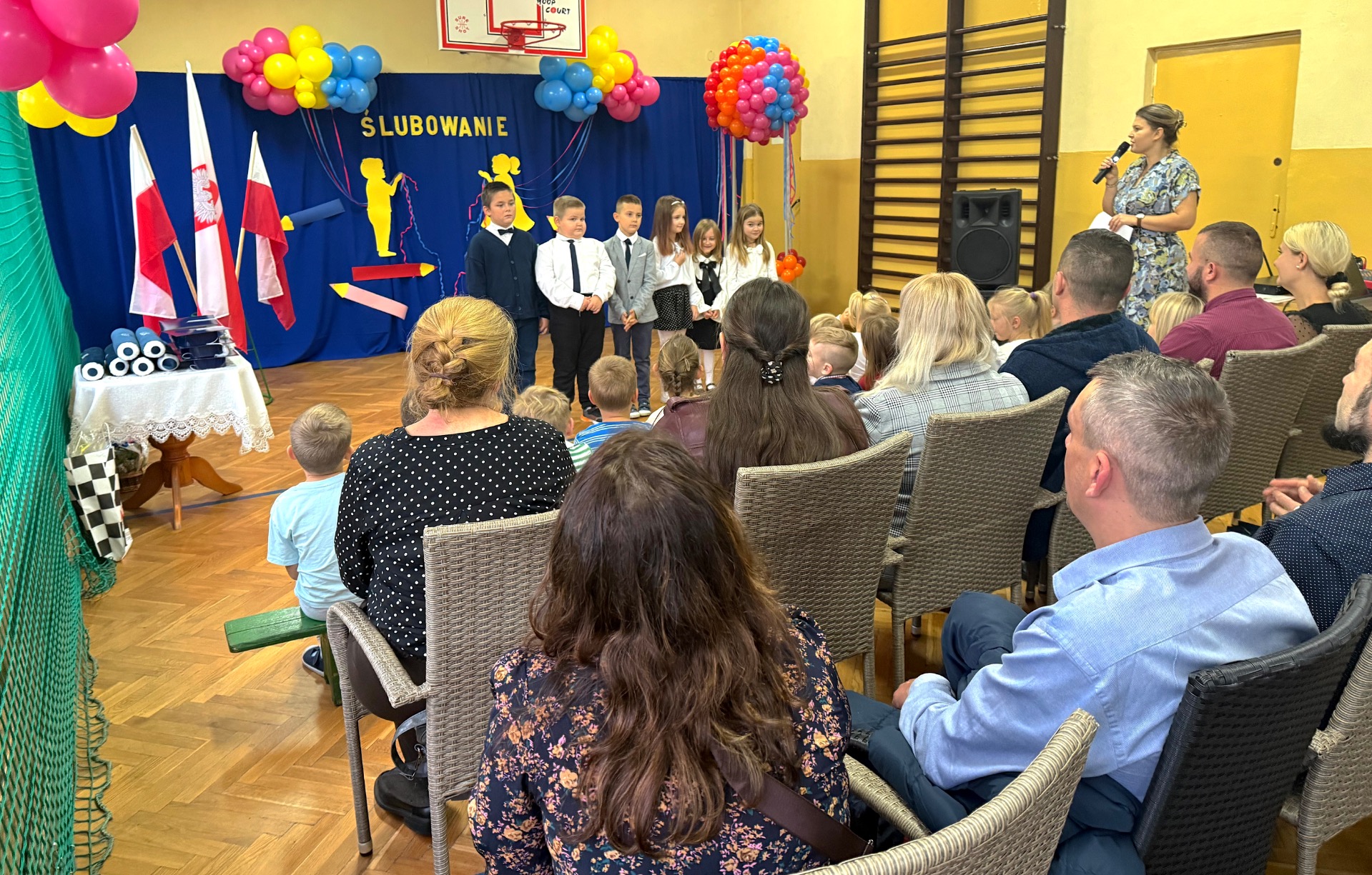 Cała społeczność szkolna z wielką radością przyjęła klasę pierwszą w poczet uczniów.