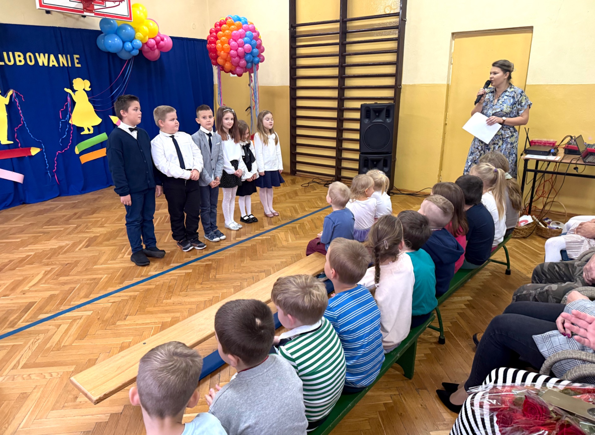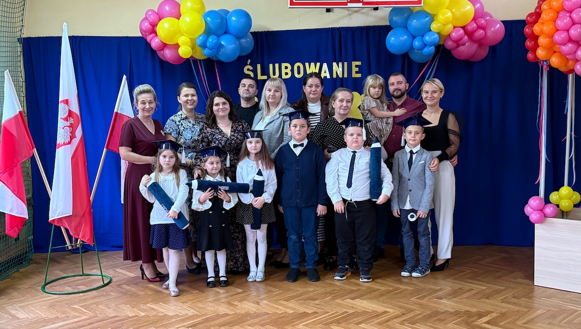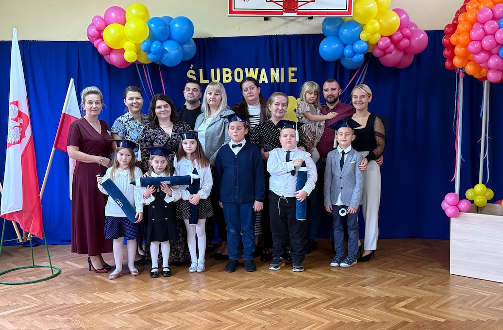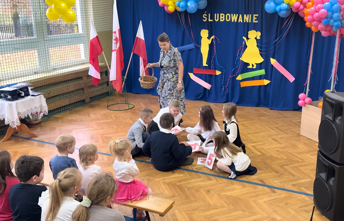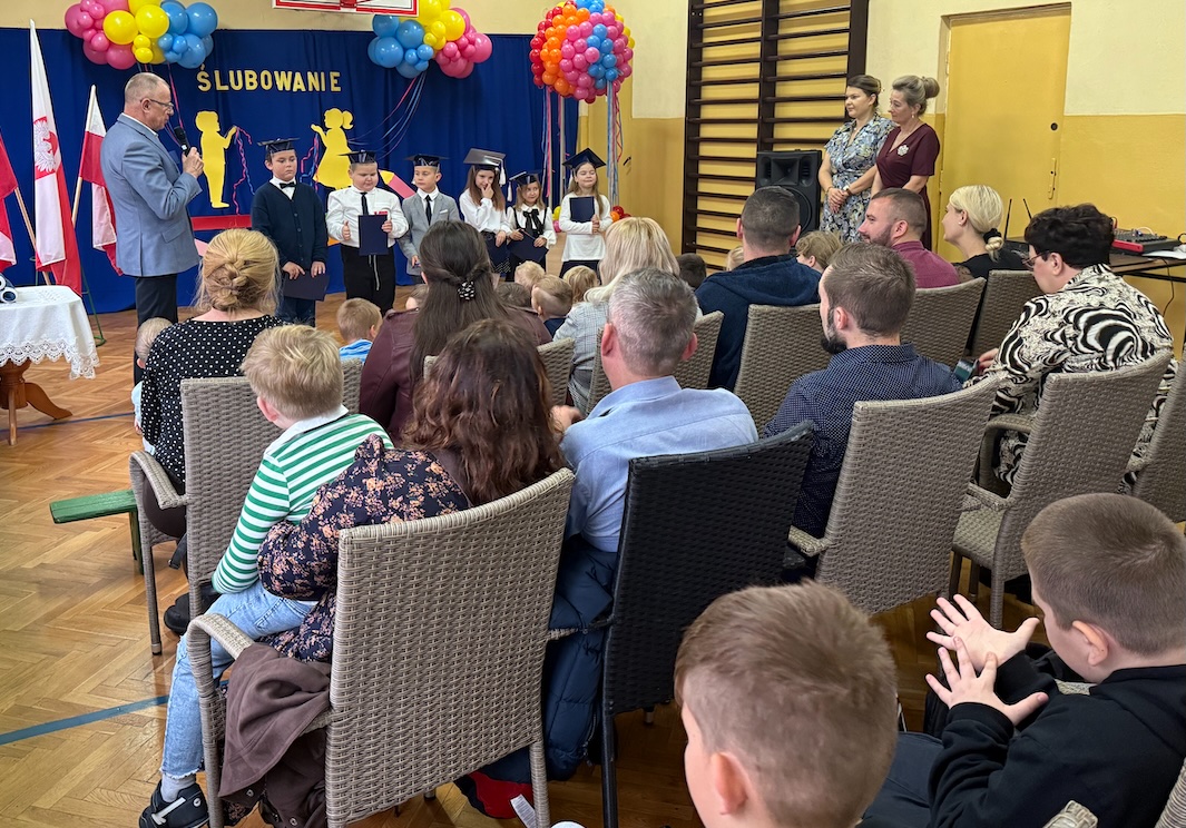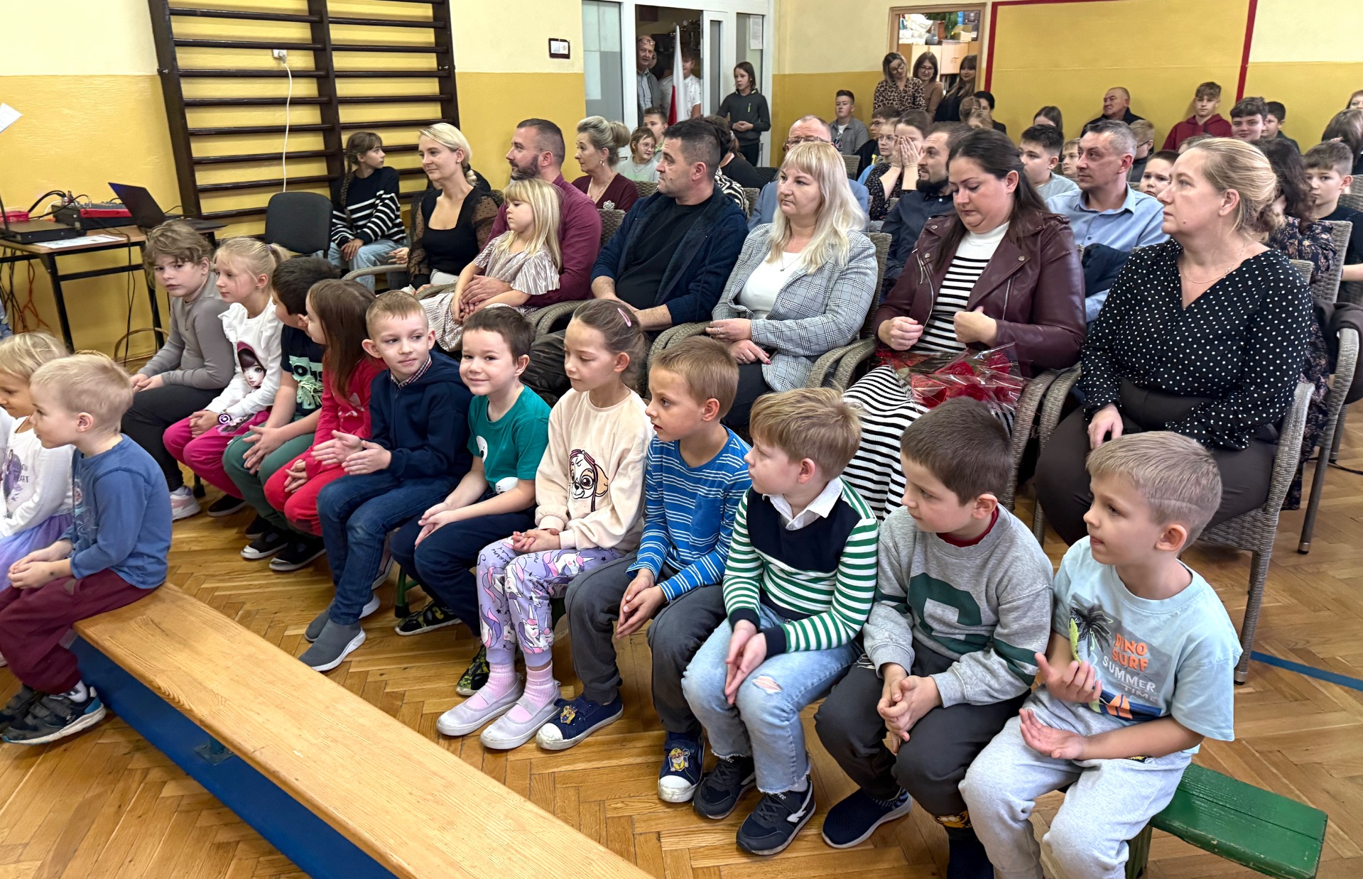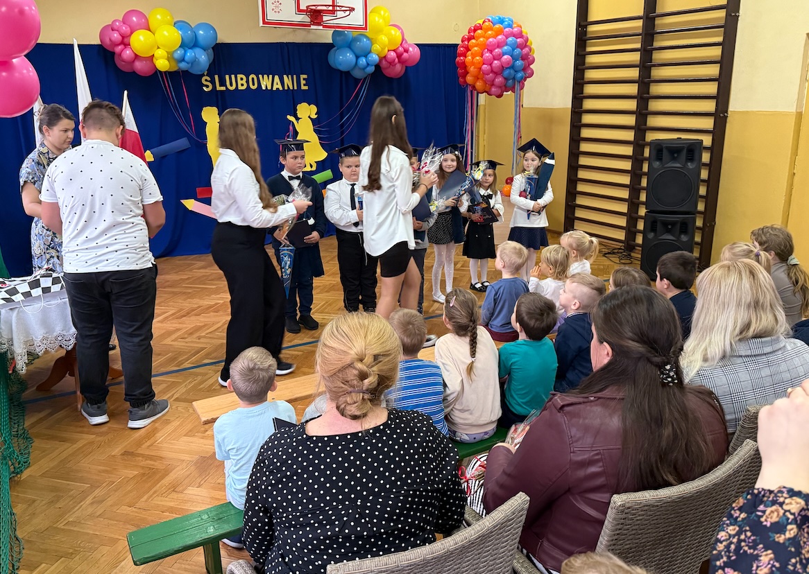 Cała społeczność szkolna z wielką radością przyjęła klasę pierwszą w poczet uczniów.