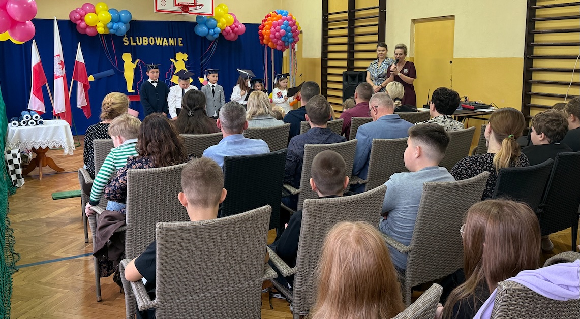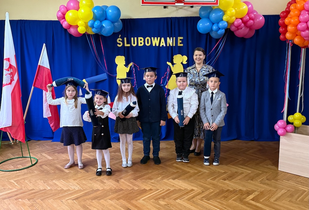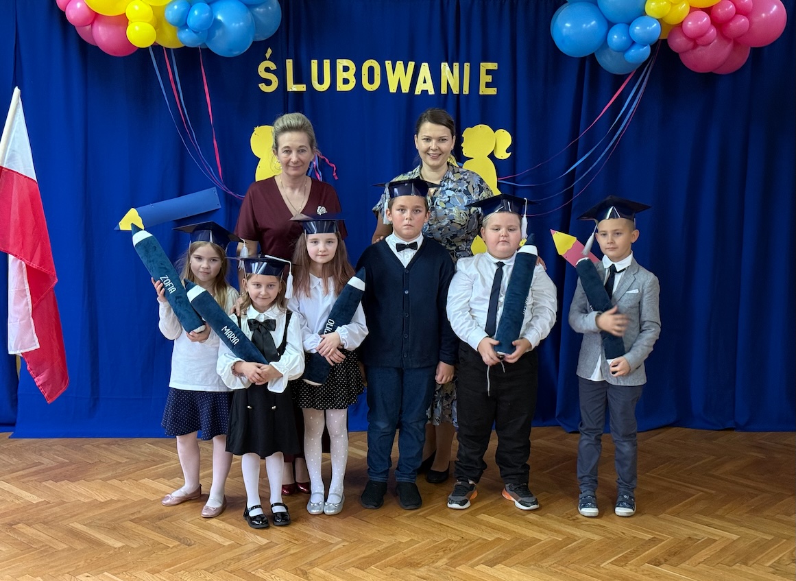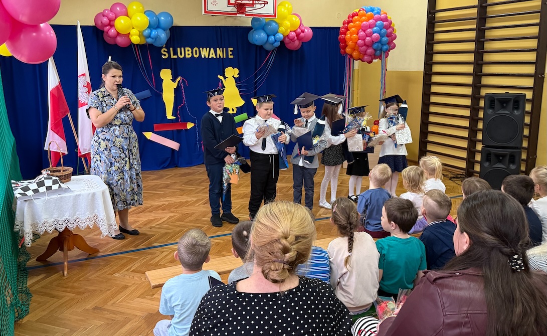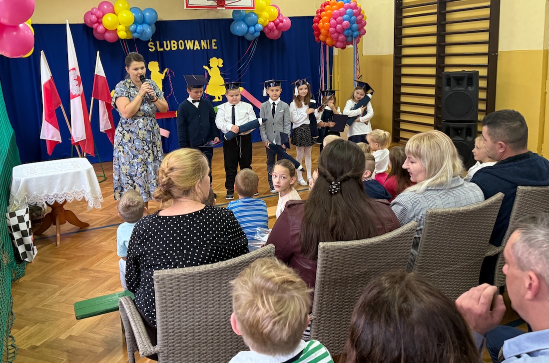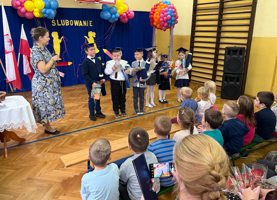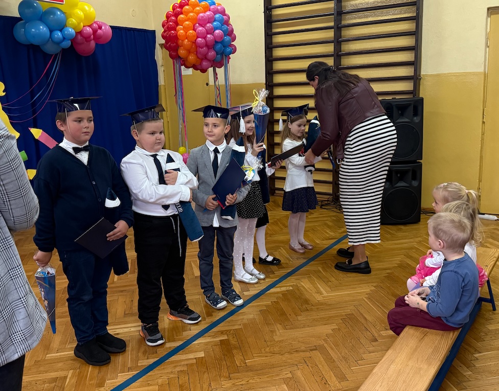 Cała społeczność szkolna z wielką radością przyjęła klasę pierwszą w poczet uczniów.