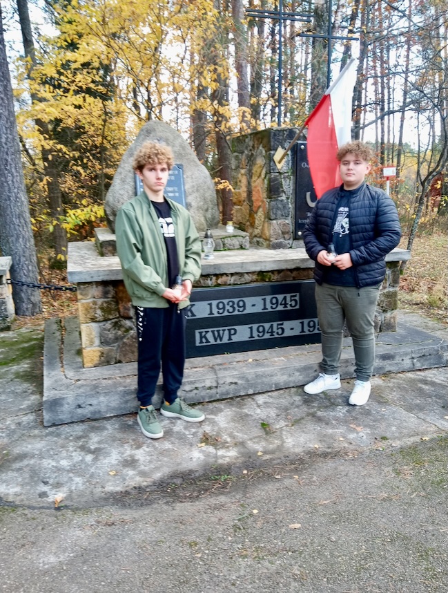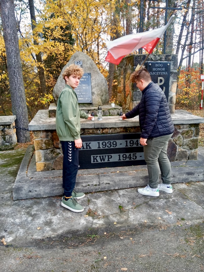 Jak co roku posprzątali Pomniki Poległych Żołnierzy Armii Krajowej i Konspiracyjnego Wojska Polskiego w Woli Życińskiej i na Borowcu. Uczniowie złożyli kwiaty i zapalili znicze.