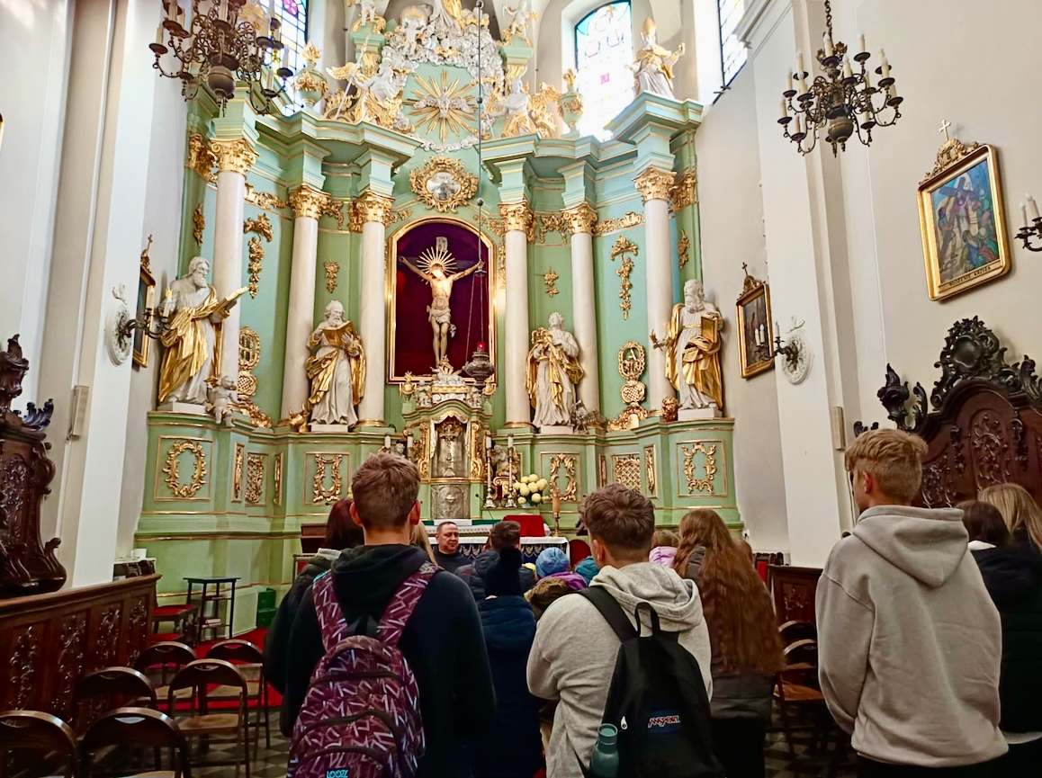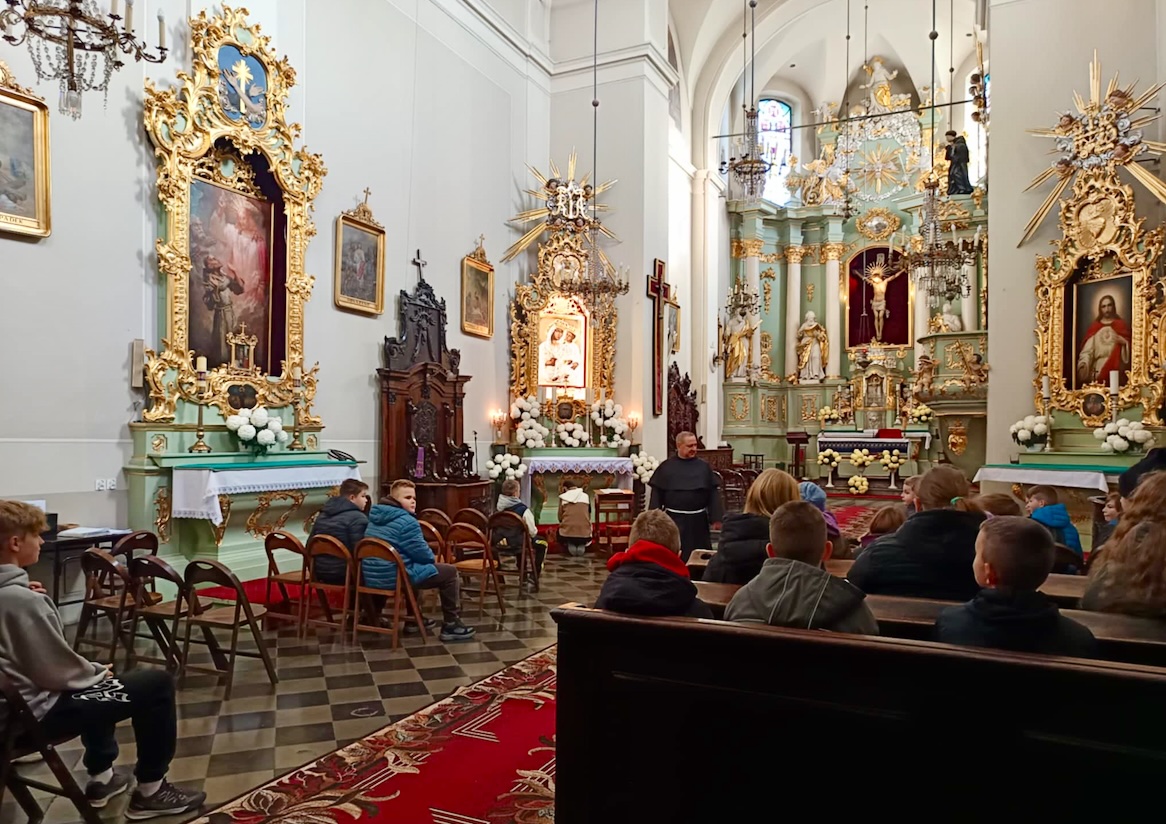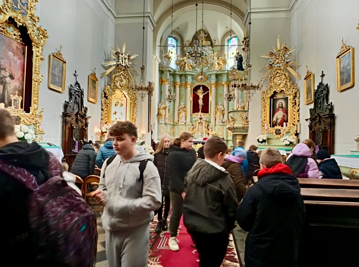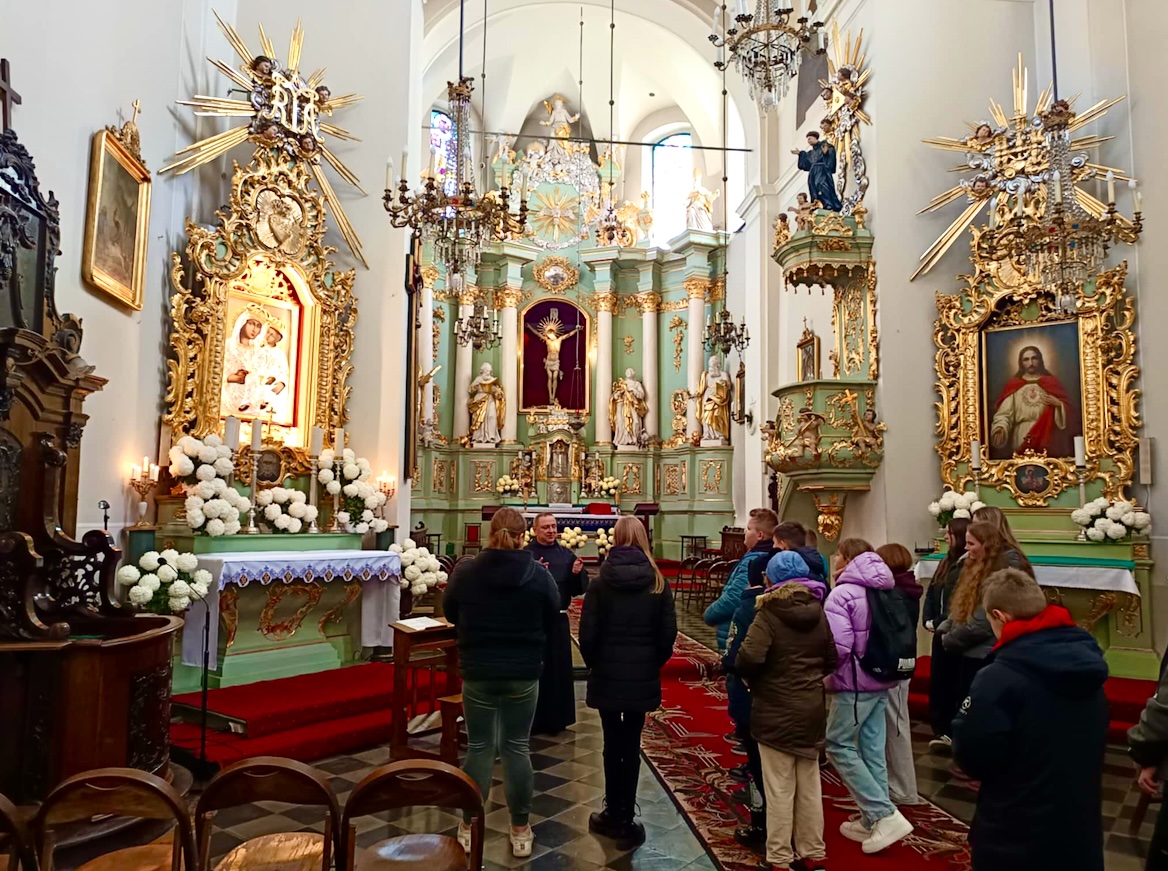 Tego dnia odwiedziliśmy również Klasztor Ojców Franciszkanów, gdzie uczniowie poznali niezwykłą historię tegoż kościoła, żywo splecioną z dziejami naszego kraju. Ponadto podziwiali bogato zdobione barokowe wnętrze świątyni oraz przepiękne obrazy, malowidła i ikony.